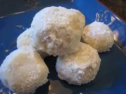 Bake till set but not browned and immediately remove from the cookie sheets to a rack. Cool slightly and roll in powdered sugar. When completely cooled, roll again in the powdered sugar.
